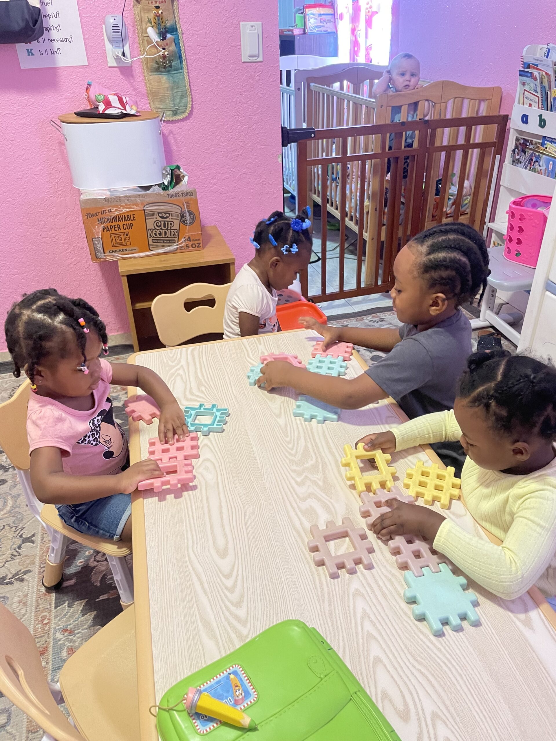 Pre-K readiness with a loving touch. Children practice colors, letters, counting, and social skills — all while building confidence and independence before entering preschool.